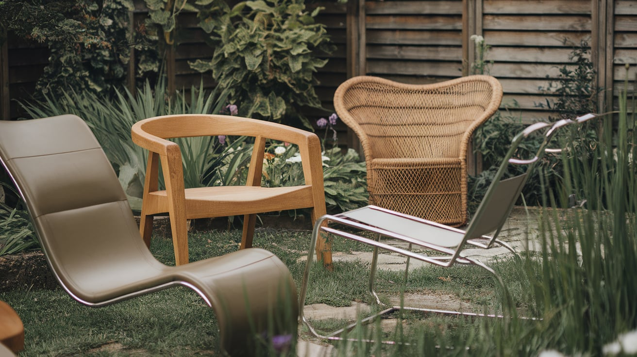 Wicker has been an outdoor staple for centuries, and for good reason. Synthetic wicker (resin wicker) is now weather-resistant, durable, and low-maintenance. Wicker lounge chairs create a coastal, breezy vibe that works great in both large gardens and small patios.