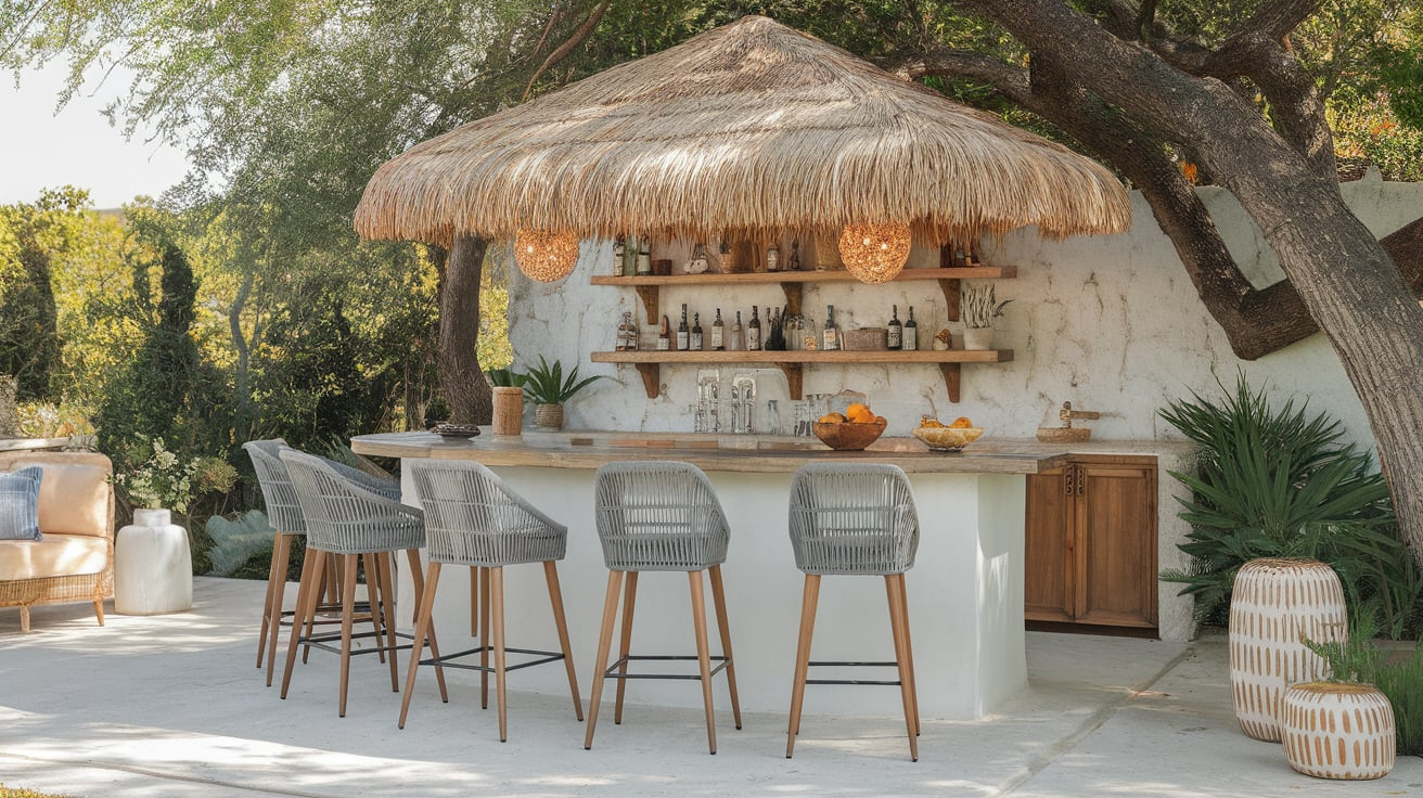 Blend your bar with a full outdoor kitchen setup for functionality and style.