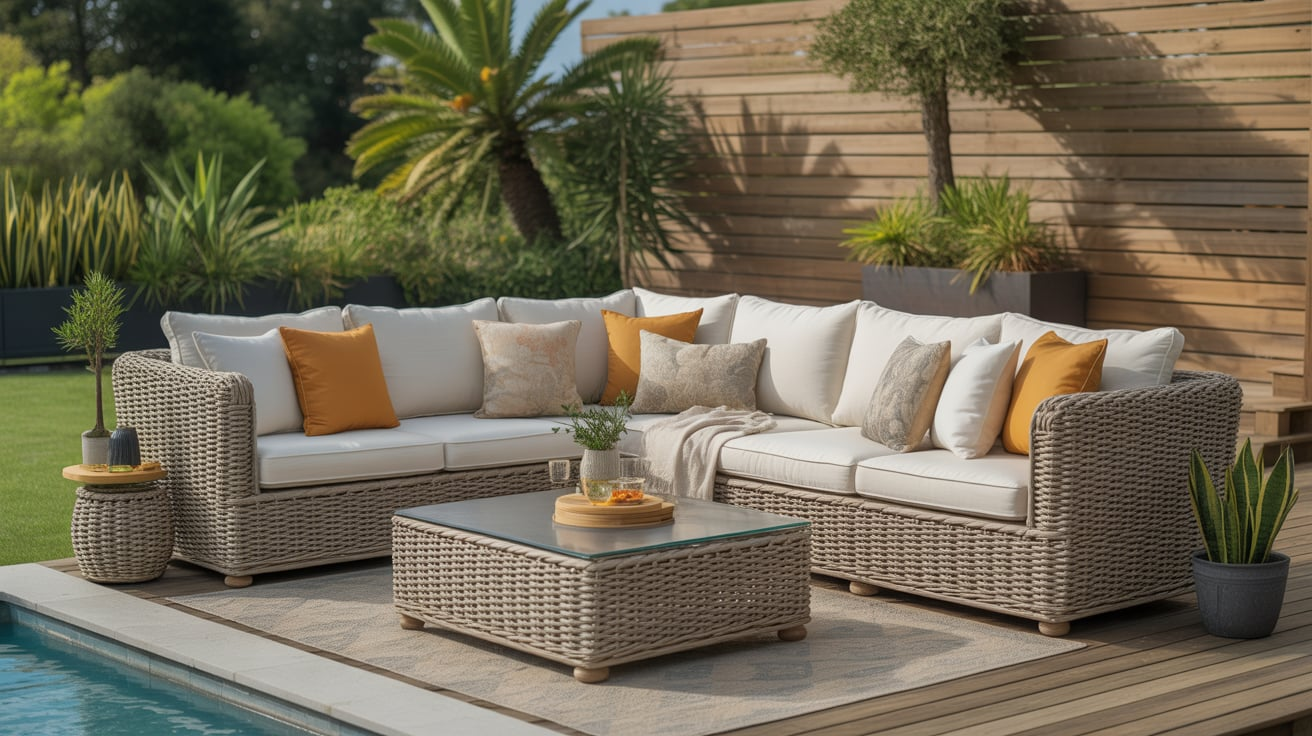 For the ultimate upgrade, invest in a plush, weather-resistant luxury sofa with a sleek design to elevate your entire backyard aesthetic.