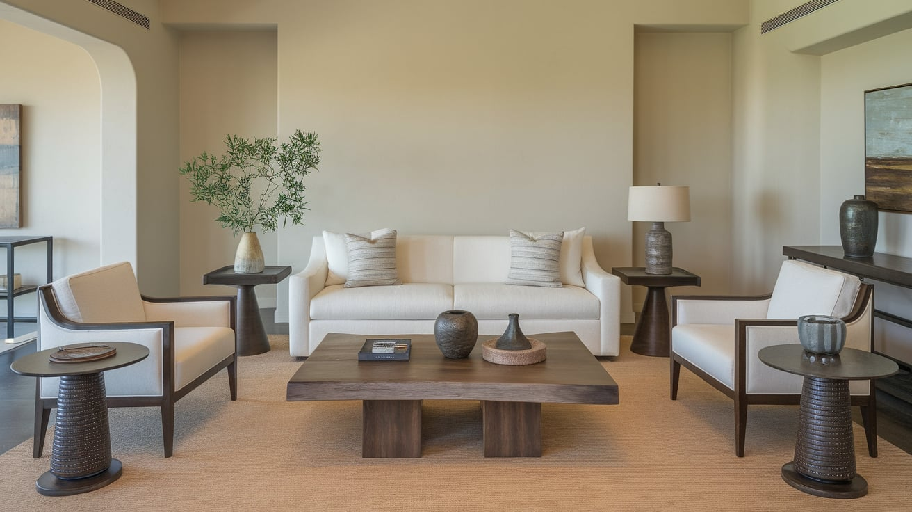 A neutral sofa and rug keep the rectangle calm, while bold cushions, art, or a statement chair keep it lively.