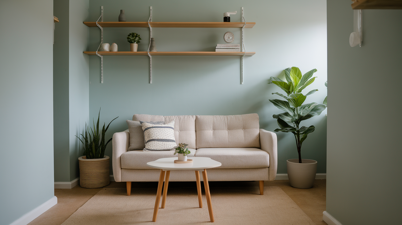 Corners are often wasted in small apartments. Instead of leaving them empty, add a corner shelf, a small armchair, or even a floor lamp. This creates a functional nook and ensures no space goes unused.